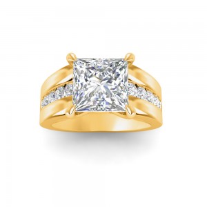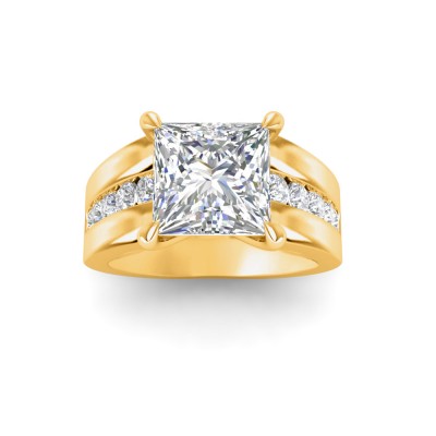 3 Ct Princess Moissanite Wide Band Channel Set Engagement Ring